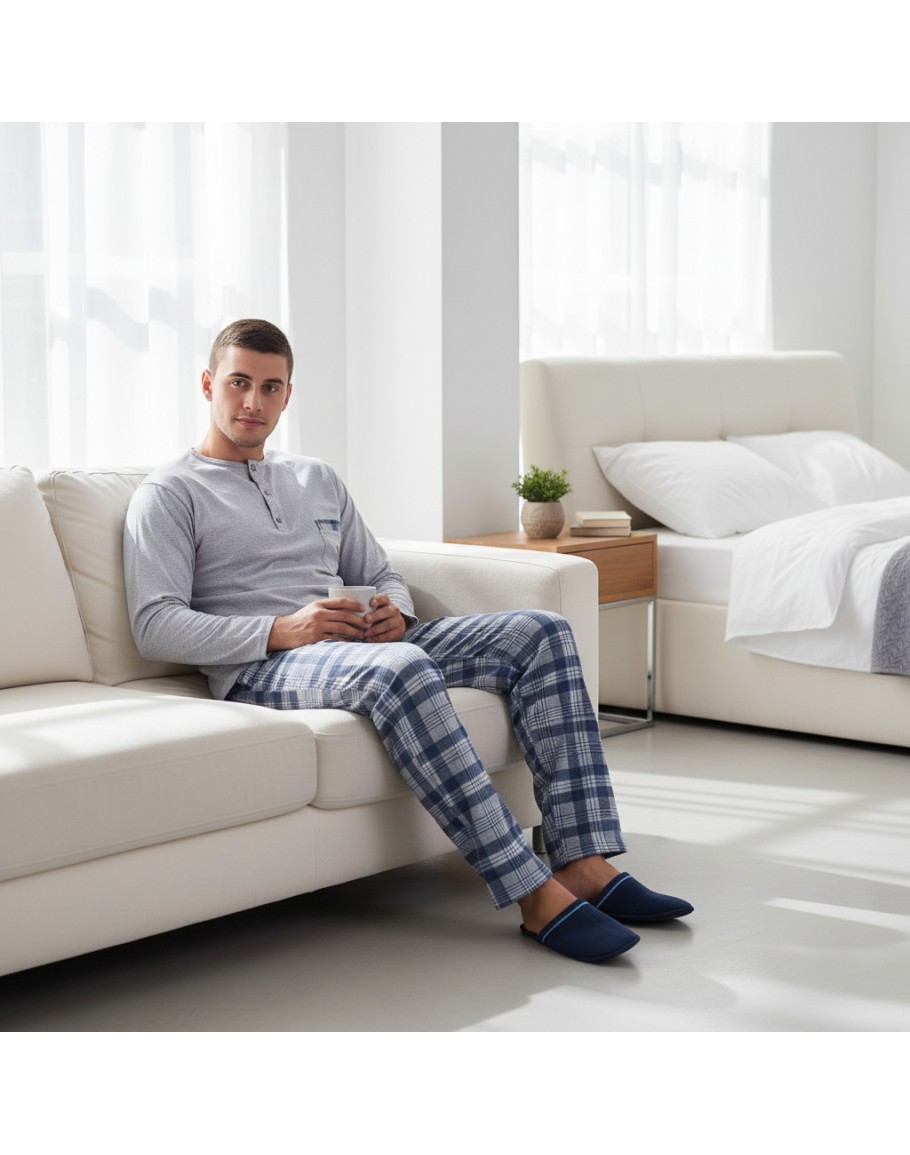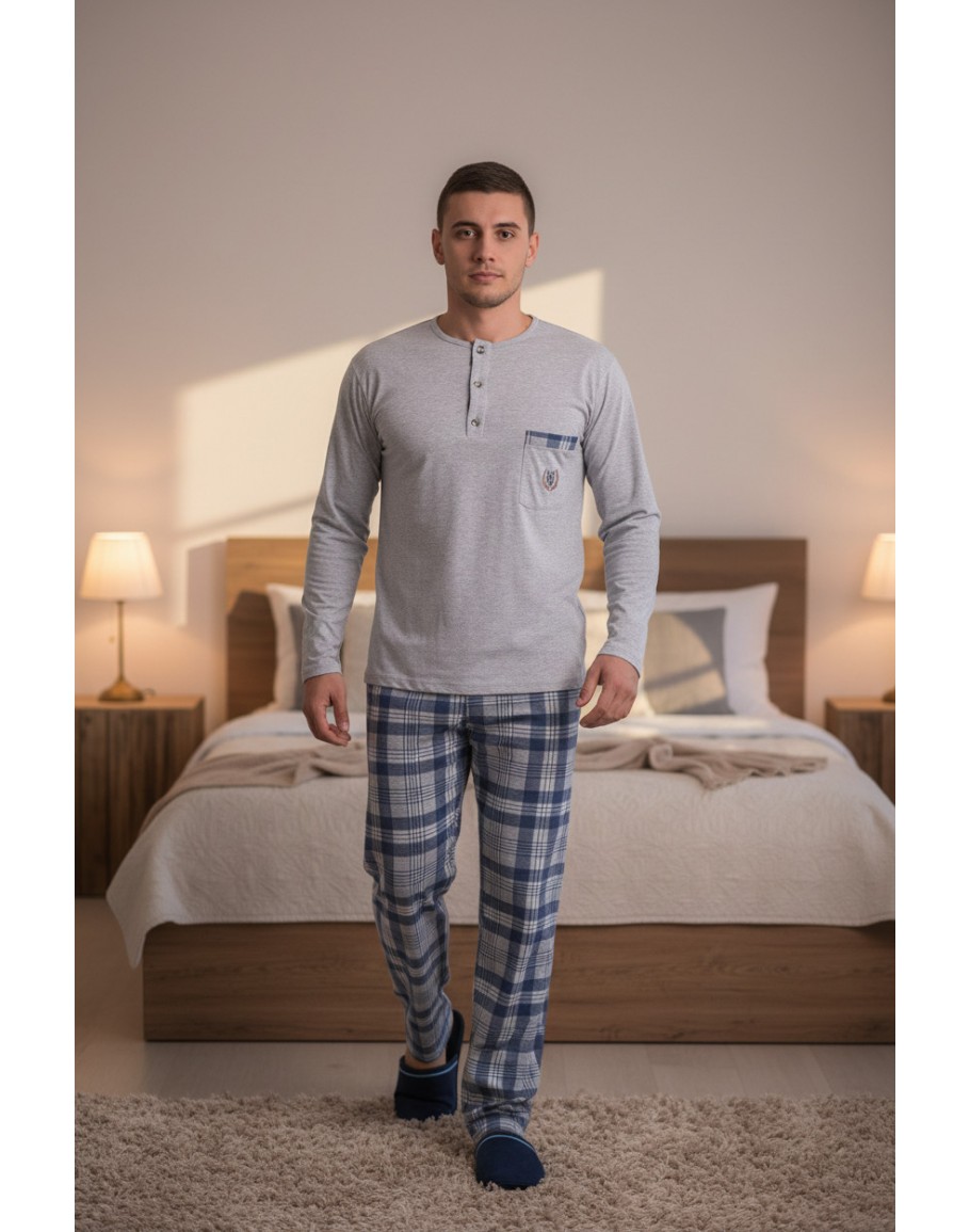 Vīriešu pidžama Kokvilnas ar garām biksēm lielie izmēri 11236S M-6XL