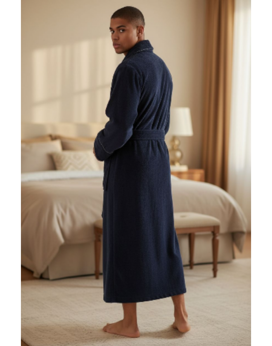Mājas halāts ir izgatavots no mīksta, zīdaina bambusa auduma ar kokvilnu, kas spēj uzturēt cilvēka ķermenim komfortablu temperatūras režīmu. Tāpēc vasarā tas būs vēss, bet ziemā - silts. Bambusa audums ar kokvilnu lieliski uzsūc mitrumu, ātri žūst, caurlaiž gaisu, tam piemīt antibakteriālas un antiseptiskas īpašības.Šis izstrādājums ir izgatavots no OEKO-TEX®️ STANDARD 100 sertificēta auduma. Šis sertifikāts garantē, ka šķiedru apstrādē netiek izmantotas kaitīgas vielas un ka izstrādājums ir drošs un nerada alerģijas.Sastāvs: kokvilna ar bambusa 50%/50%, 400 g/m2L-XL/3XL/4XL/5XL/6XL/7XLKrāsa: Tumši zilā Ražošana Turcija Mazgāt: 30°CKrāsa var nedaudz atšķirties no attēlā redzamāsUzmanīgi izpētiet izmēru tabulas,kas palīdzēs izvēlēties pareizo izmēru..