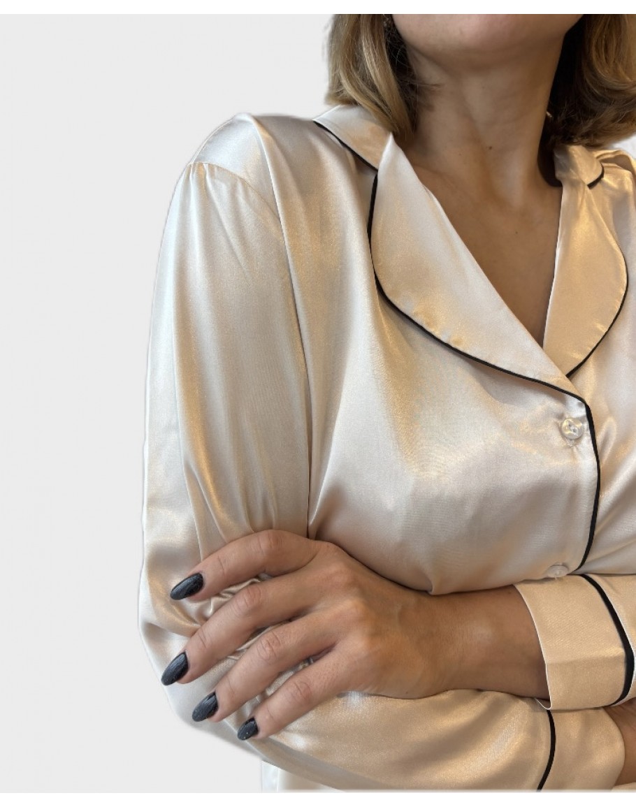 Elegants sieviešu pidžama no augstākās kvalitātes satīna. Klasisks atlocāms apkaklis, pogu aizdare 1208Sp M-XL